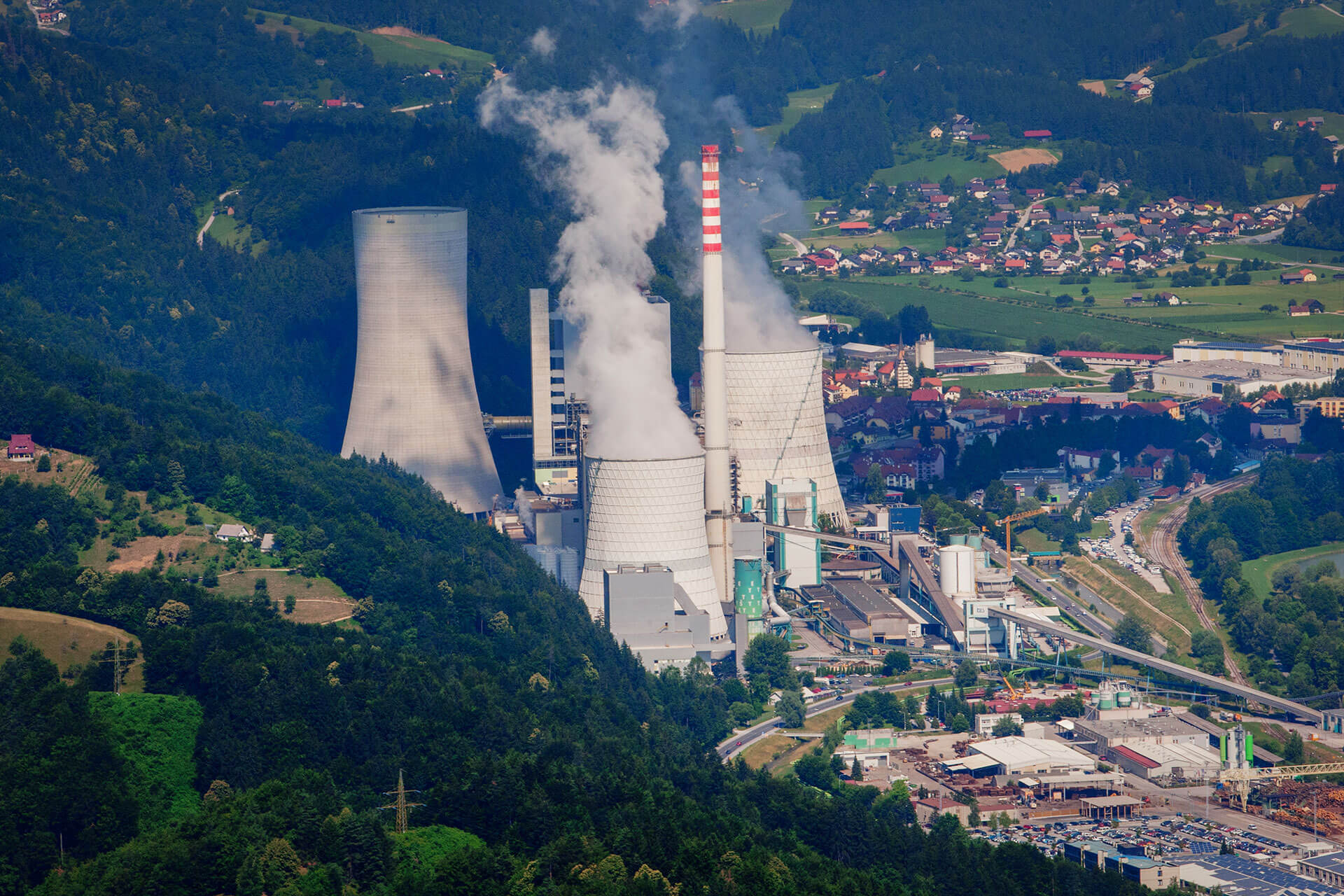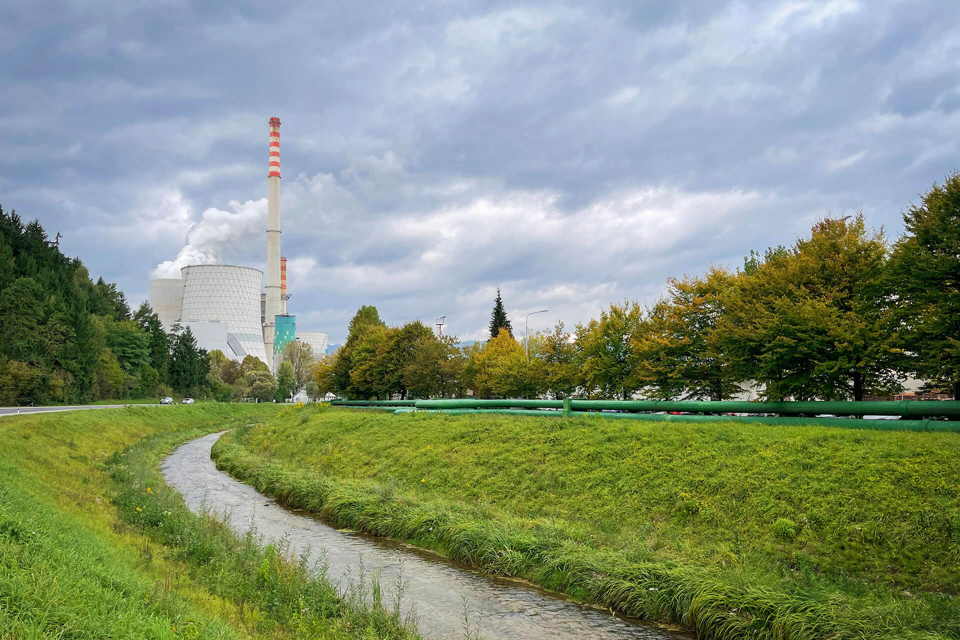 The complete building of block 6 consists of a cooling tower with a diameter of 100 m and a height of 67 m and the main technological facility dim. 90X300 m, which consists of several facilities: machine room, boiler room, electrofilters, bunker part, purification plants... In addition to these facilities, we also have auxiliary smaller facilities within the entire space of the power plant (water preparation, coal transport...).