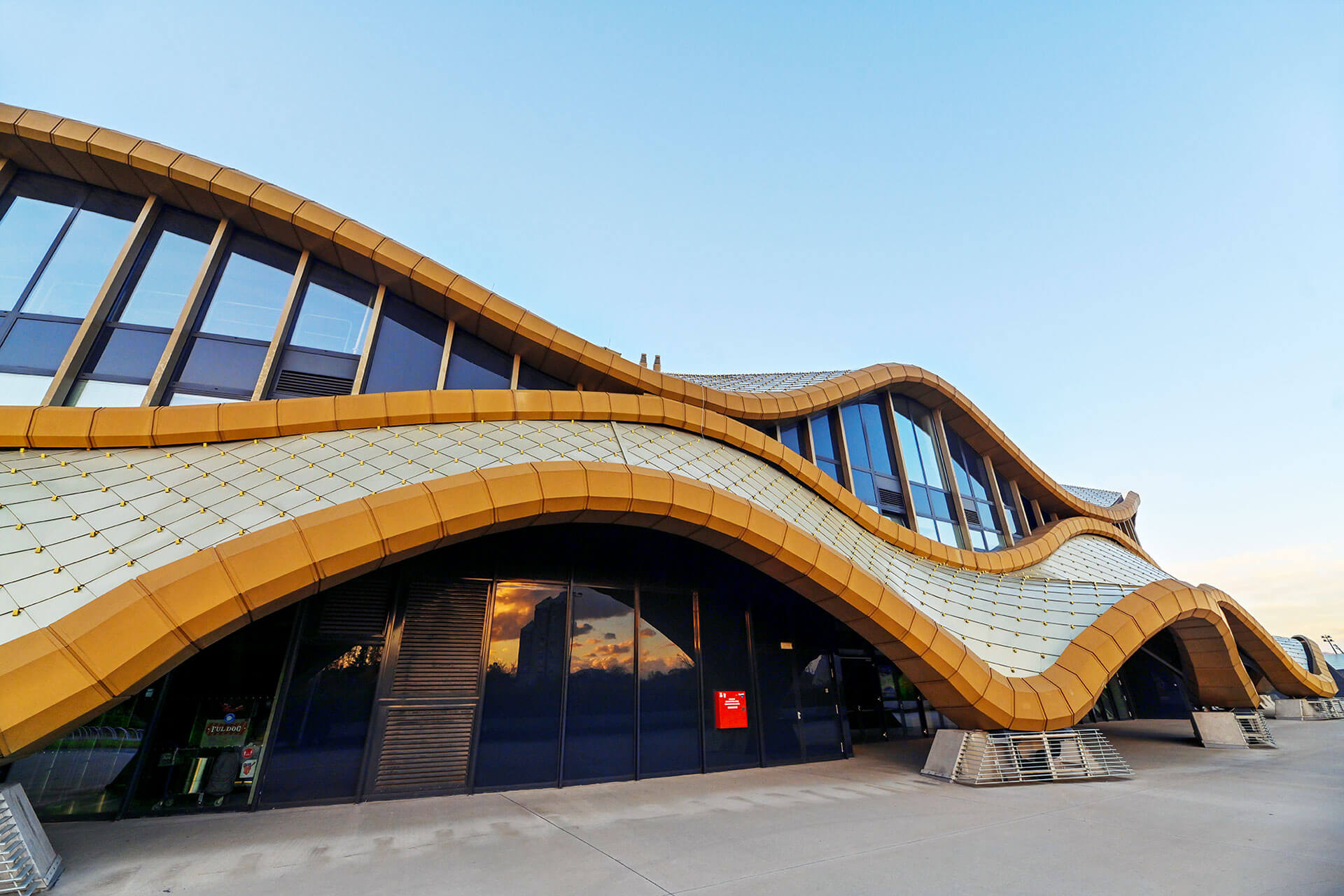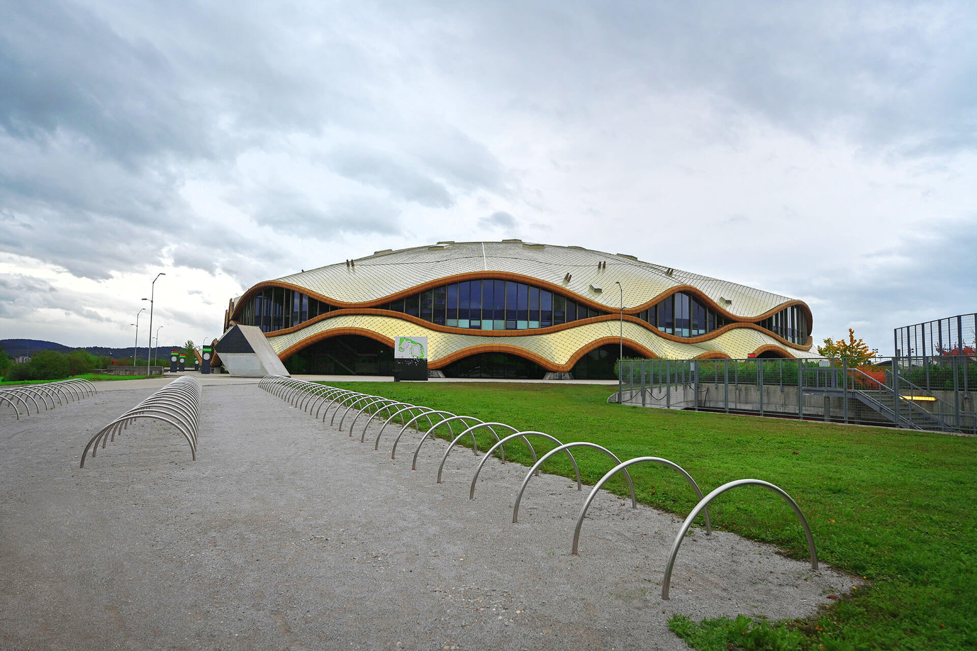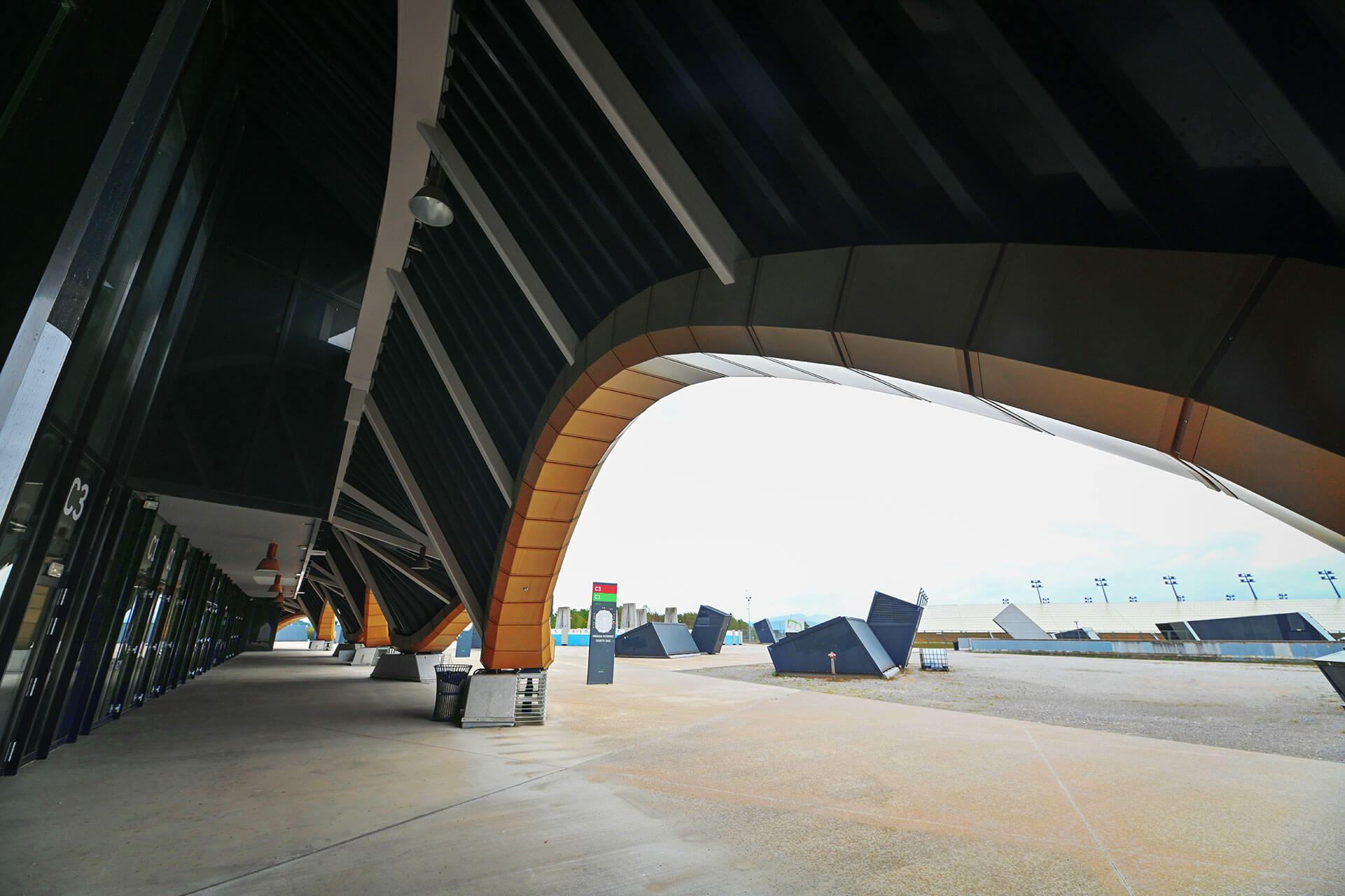 The building is designed in a modular format with floor plan dimensions of 127x161 m. The central part of the facility is a playground at an angle of -4.50, surrounded by stands with seats. The roof of the hall is designed as a large-span light steel shell structure. The hall is designed for 14,000 spectators.